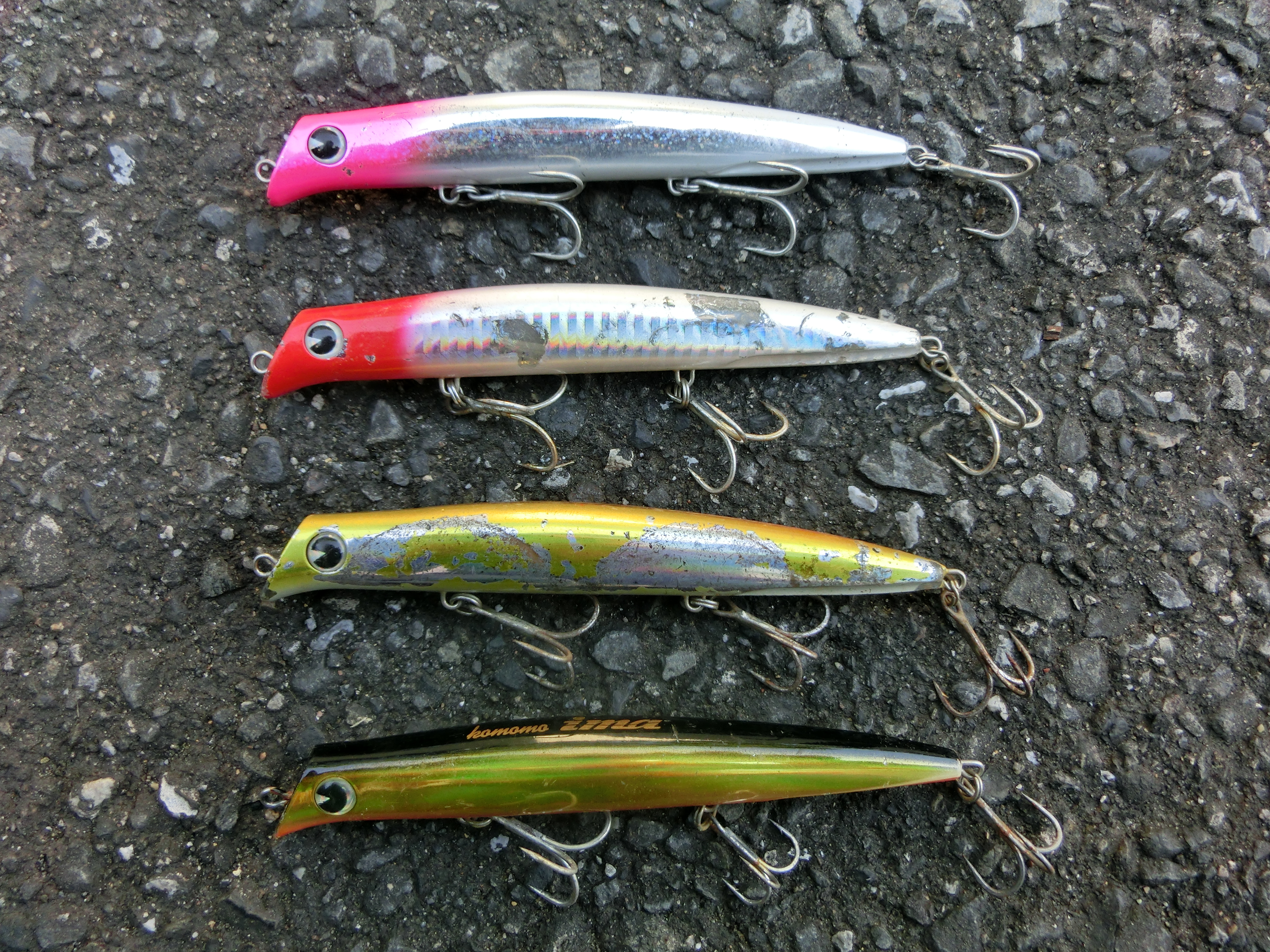 下記の商品写真は、新品ではなく、私が何年も使い込んだ歴戦の勇士だ。塗装が剥がれ落ちているが、これはこのルアーの塗装が特段弱い事を示すわけでは無く、それだけ私が多くの場所で使い込み、多くの魚たちにかじられた証拠だと思って欲しい。