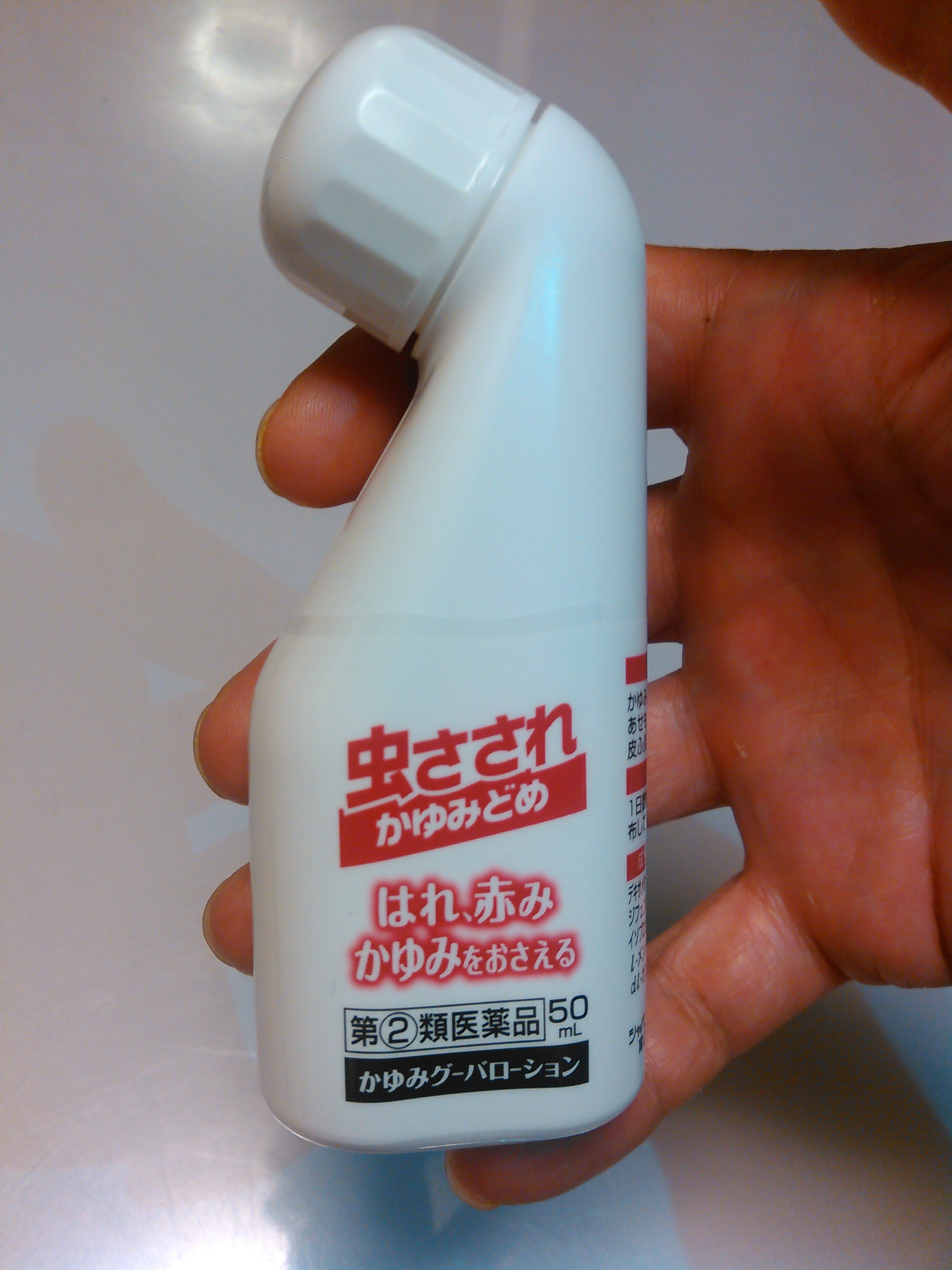 ちなみに、この写真の薬はジャパンメディック(株)の「かゆみグーバローション」という名前だが、同じ会社が発売している「マイゼロック」という薬も、全く同じ成分なので「かゆみグーバローション」が店頭に無かったらこちらを試してみてもいいだろう。