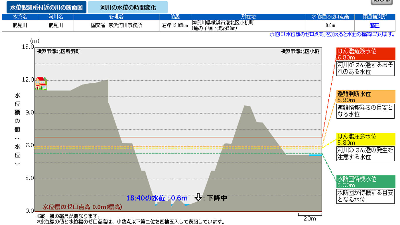 鶴見川:亀の子橋水位観測所/神奈川県横浜市港北区新羽町 (左岸)
