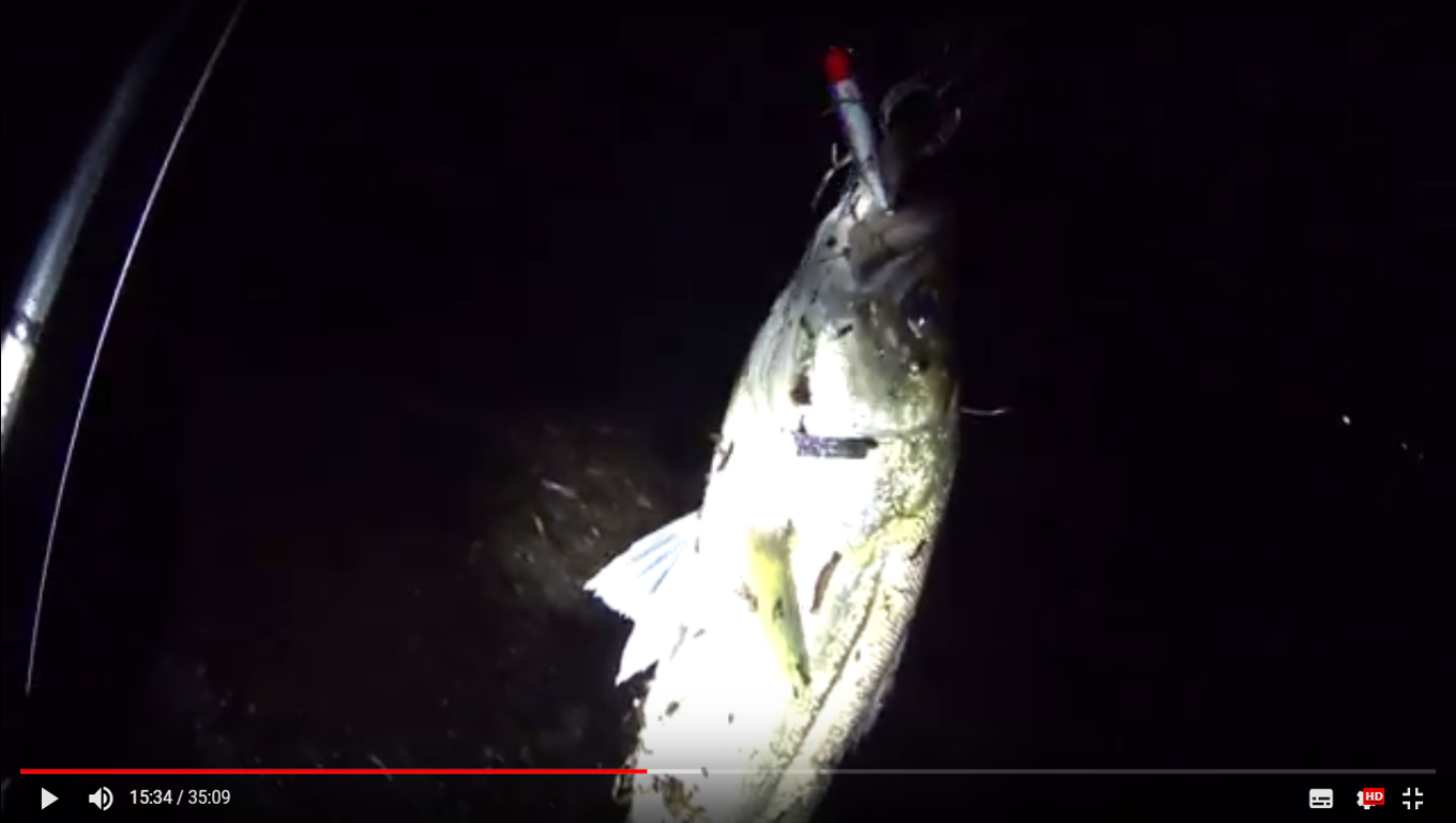 《やっとこさ釣れたスズキ君。詳しくは下の記事&動画へ》