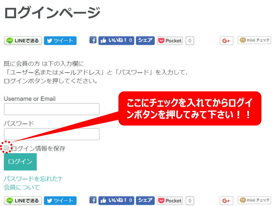 の□にチェックを入れてから、 ログインボタンを押すと恐らくうまくいくはずです。