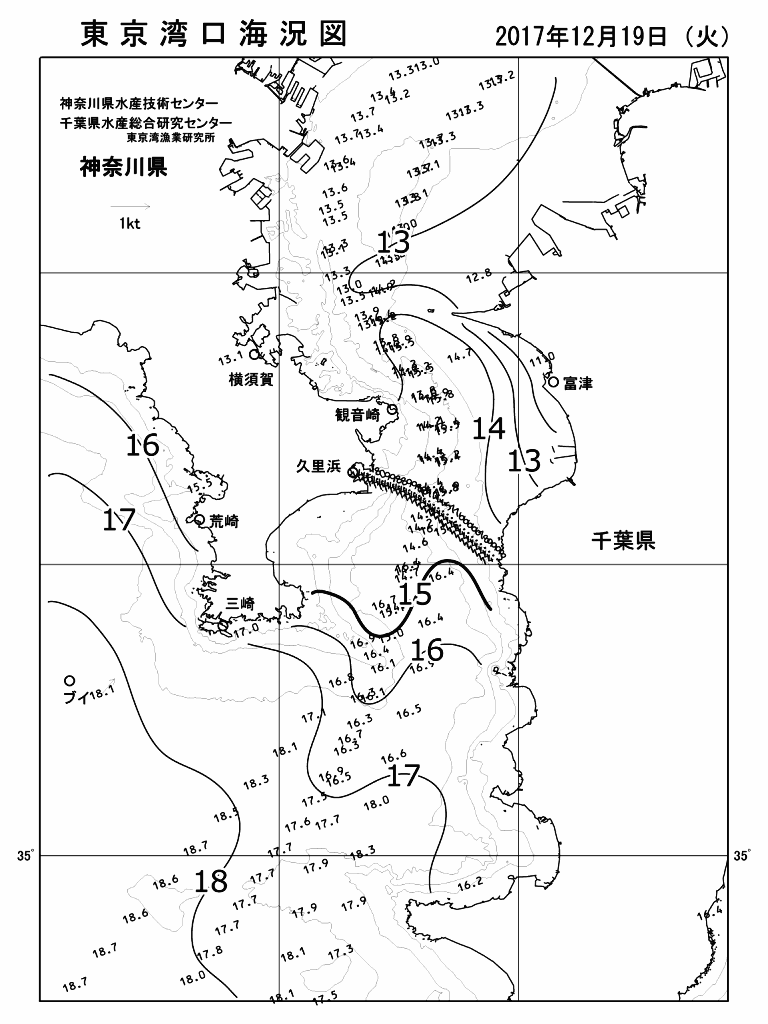 ≪2017年12月19日東京湾の水温分布≫