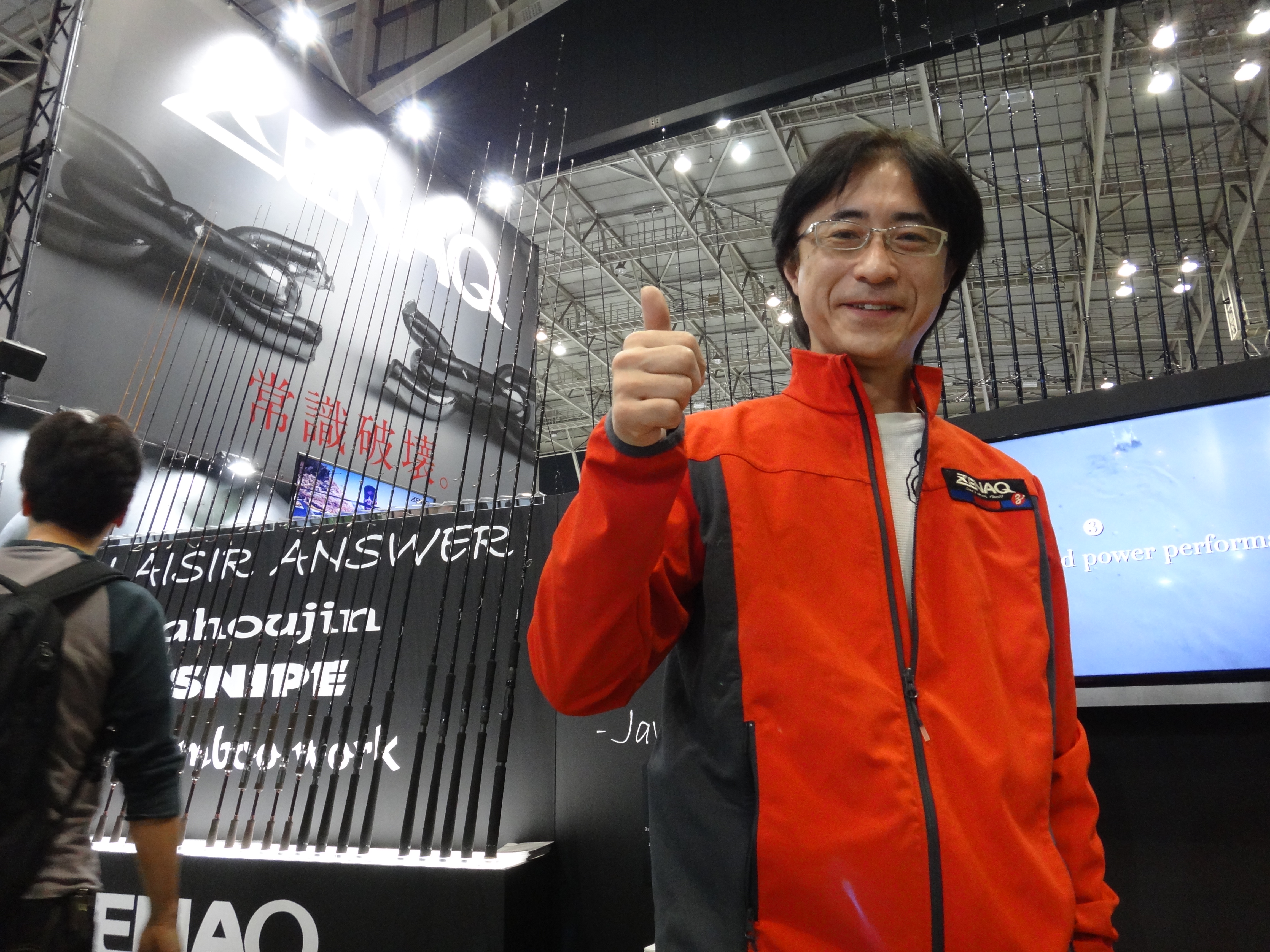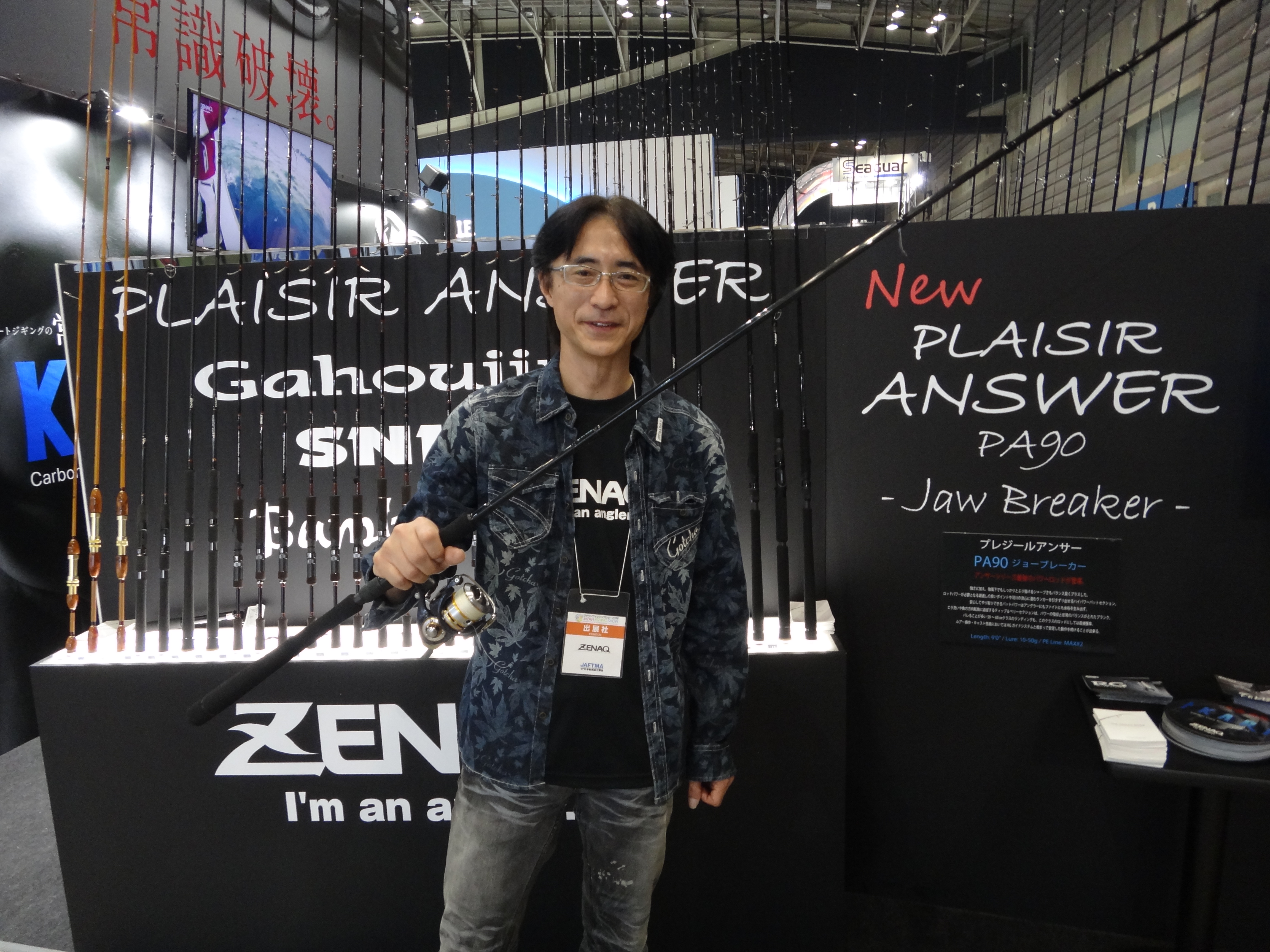 そうそう、プレジールコーナーの裏側にあった、青物やGT系のもっとゴツイ竿のコーナーには、衣川、広川氏以外にも、竿と同じくらいゴツくて変態度の高い方々が、所狭しと並んでいたので、こちらのコーナーにご来場の方々は、また別の意味で刺激的だったと思います。