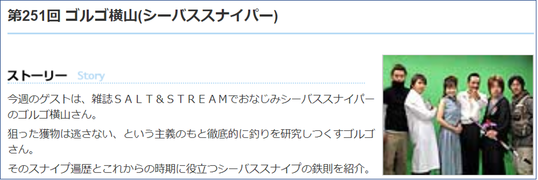 残念ながら私の放送回は、サイト内にアーカイブされておらず視聴できないようだ。皆さん、是非、視聴できるよう釣りビジョンに要望を送って欲しい(笑)