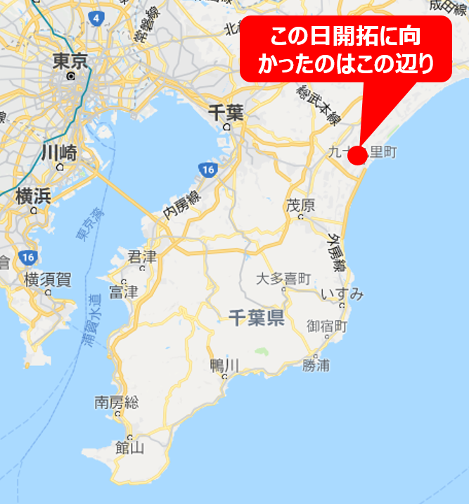 という感じで、出発のギリギリまで行先に悩んでいた事が見て取れるだろう。最終的に九十九里方面に車を走らせたものの、途中何度も雨雲レーダーの状況を再確認し、現地に着くまでポイント選択に悩んでいた。