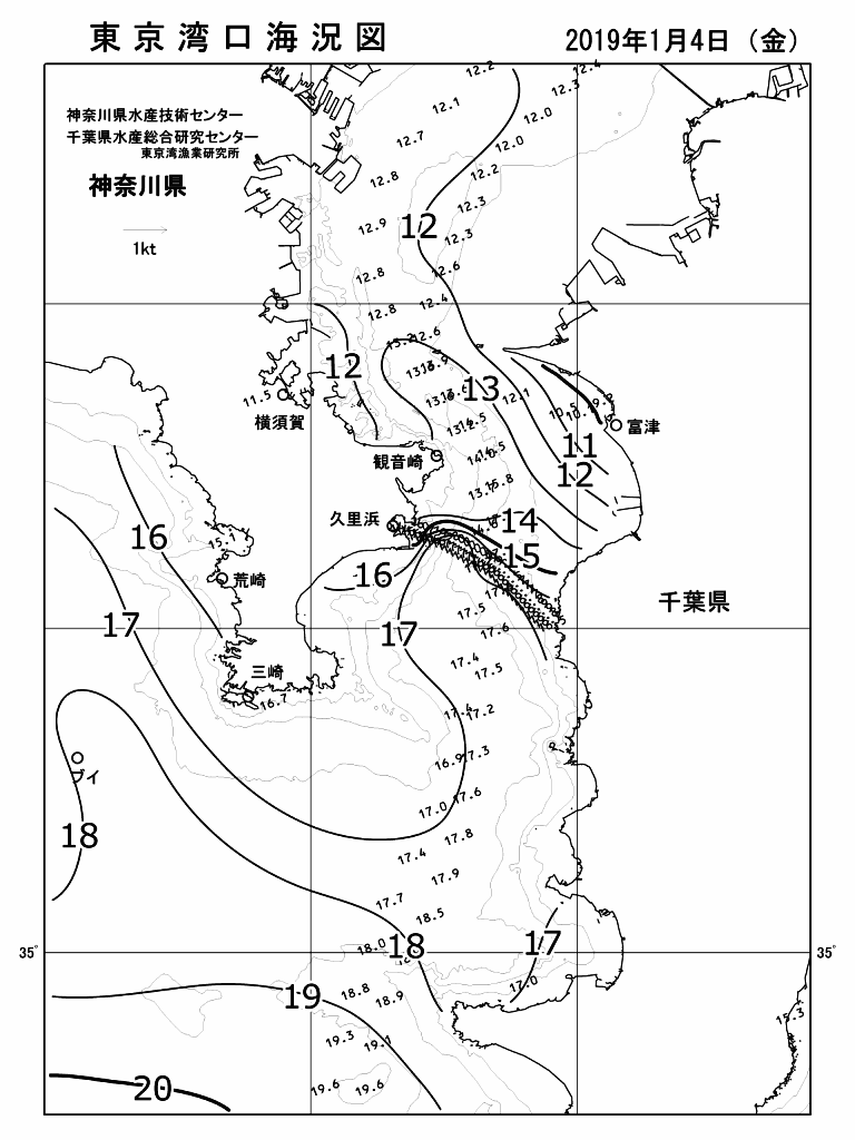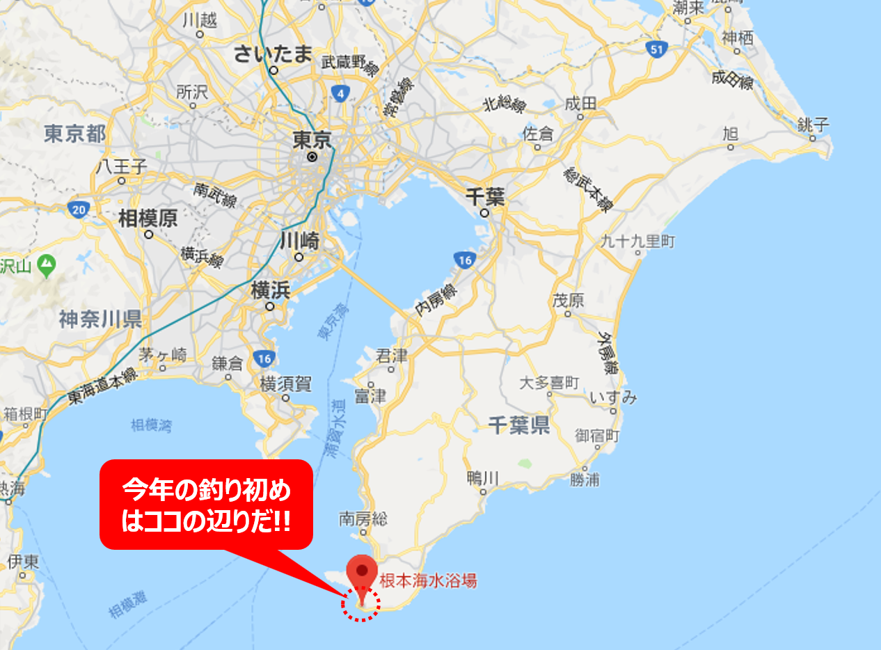 ちなみに、釣行当日の周辺海域の水温分布はこんな感じ。残念ながら、今回選択した房総半島の南端エリアの水温は掲載されていないが、おそらく沿岸部の陸っぱりポイントは17度前後の水温になっていただろう。