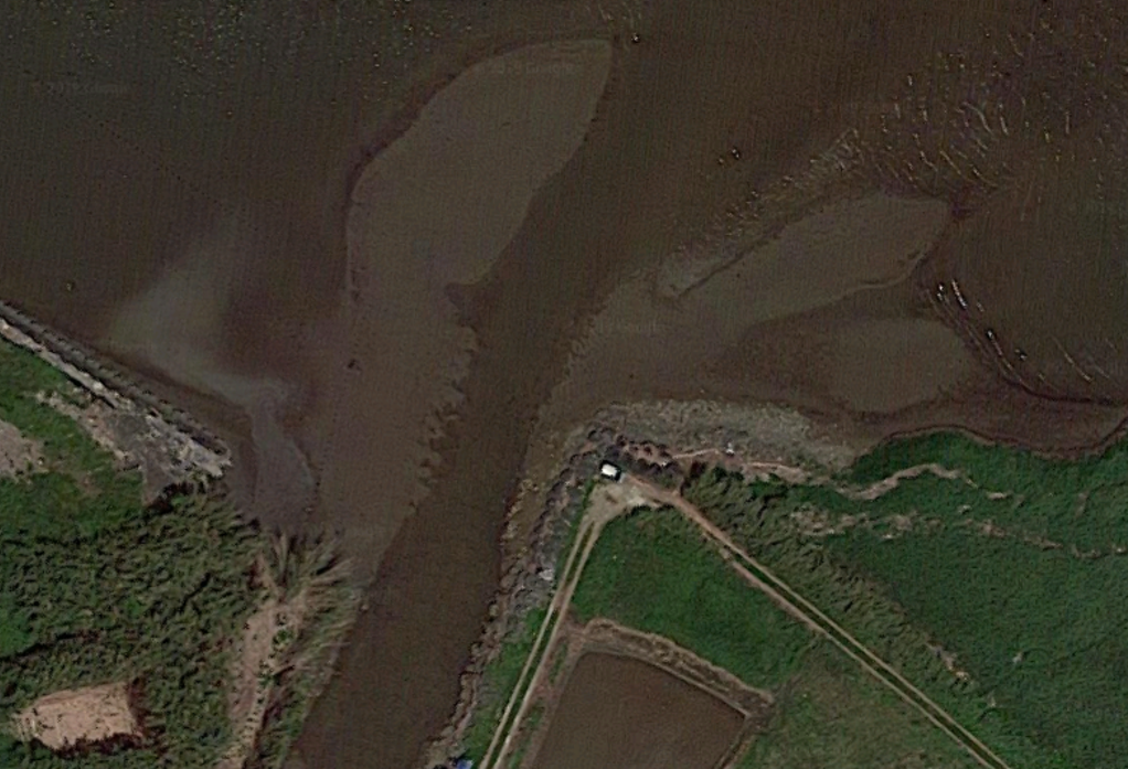 その次にチェックするのは「中洲」だ。これも衛星画像で簡単に見つけられるので、美味しそうな中洲を見つけたら、実際にその場に行ってみて、侵入可能性を探る。上記の4河川には、いずれも中洲がある。九十九里エリアに限らず、私の河川の開拓方法は、大体その順番で行うことが多い。