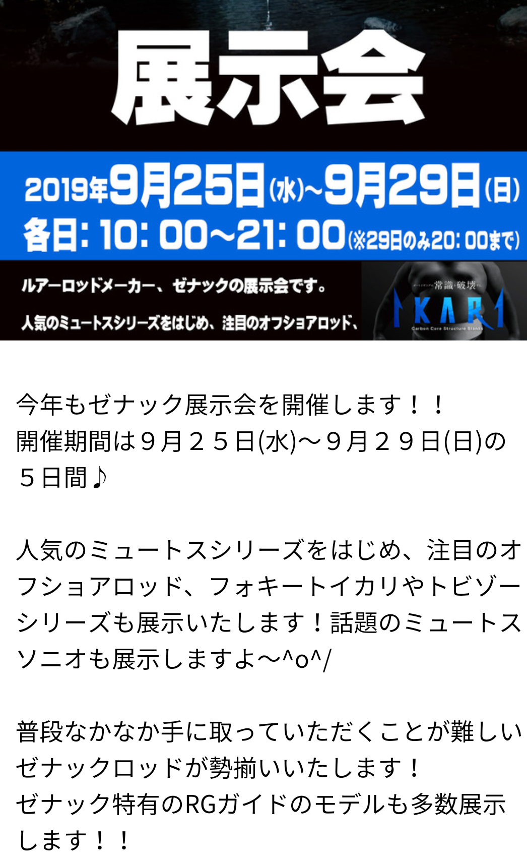 私が愛用しているぜナック社のロッドは、ショップには通常置いてないので、こういう機会でもないと、実物に触れる機会がなかなかありません。希少なだけに、触るだけでも御利益があるかもしれません(笑)お近くの方は、是非どうぞ🖐