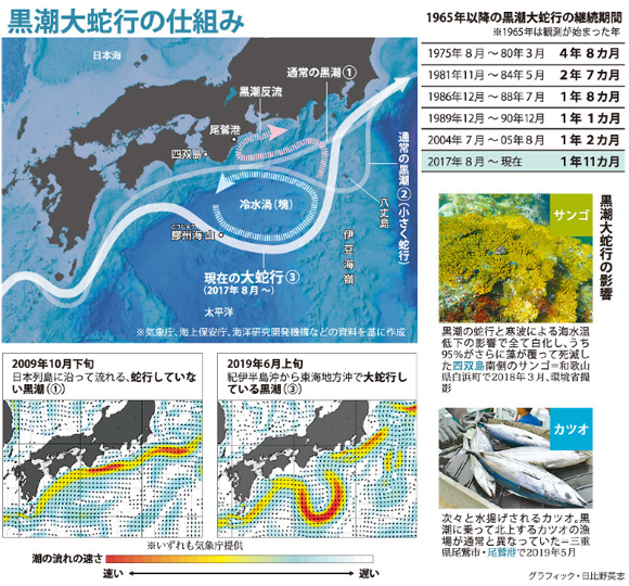 《毎日新聞科学の森」;続く黒潮大蛇行、影響は 12年ぶり発生、3番目の長さに》