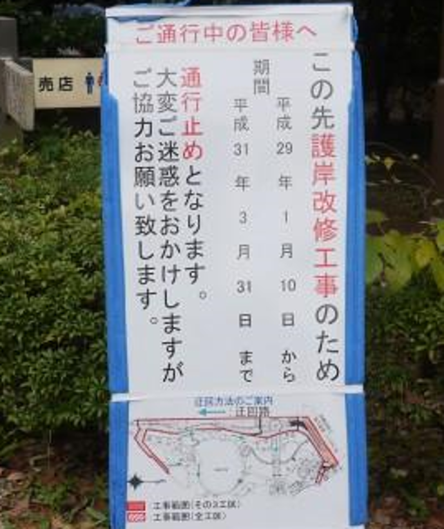 また「工事」の主体が「行政機関」である場合(例えば、海浜公園を改築しているみたいな場合)、工事が終われば、以前の様に自由に立ち入ることが出来るようになる可能性が高い。