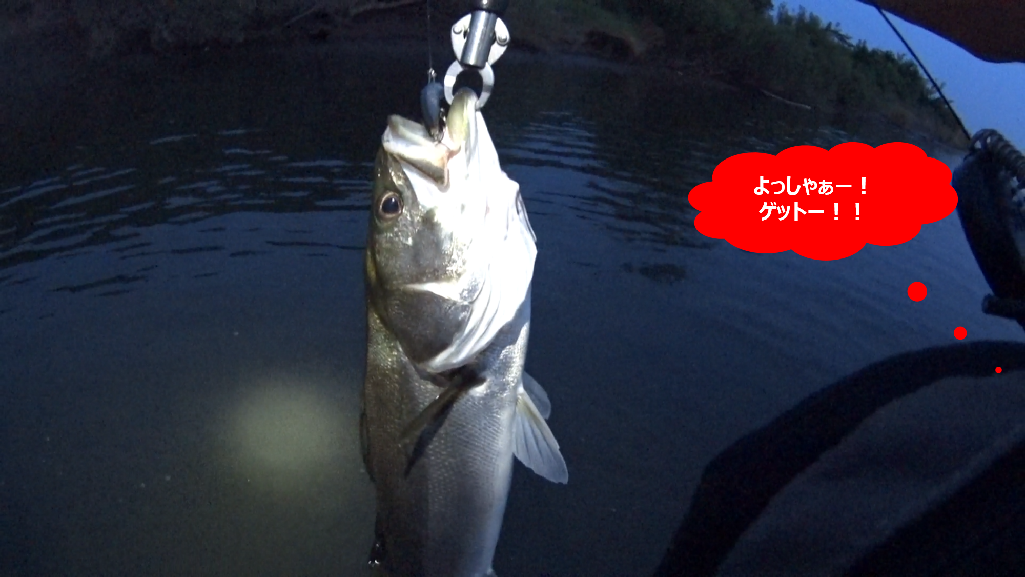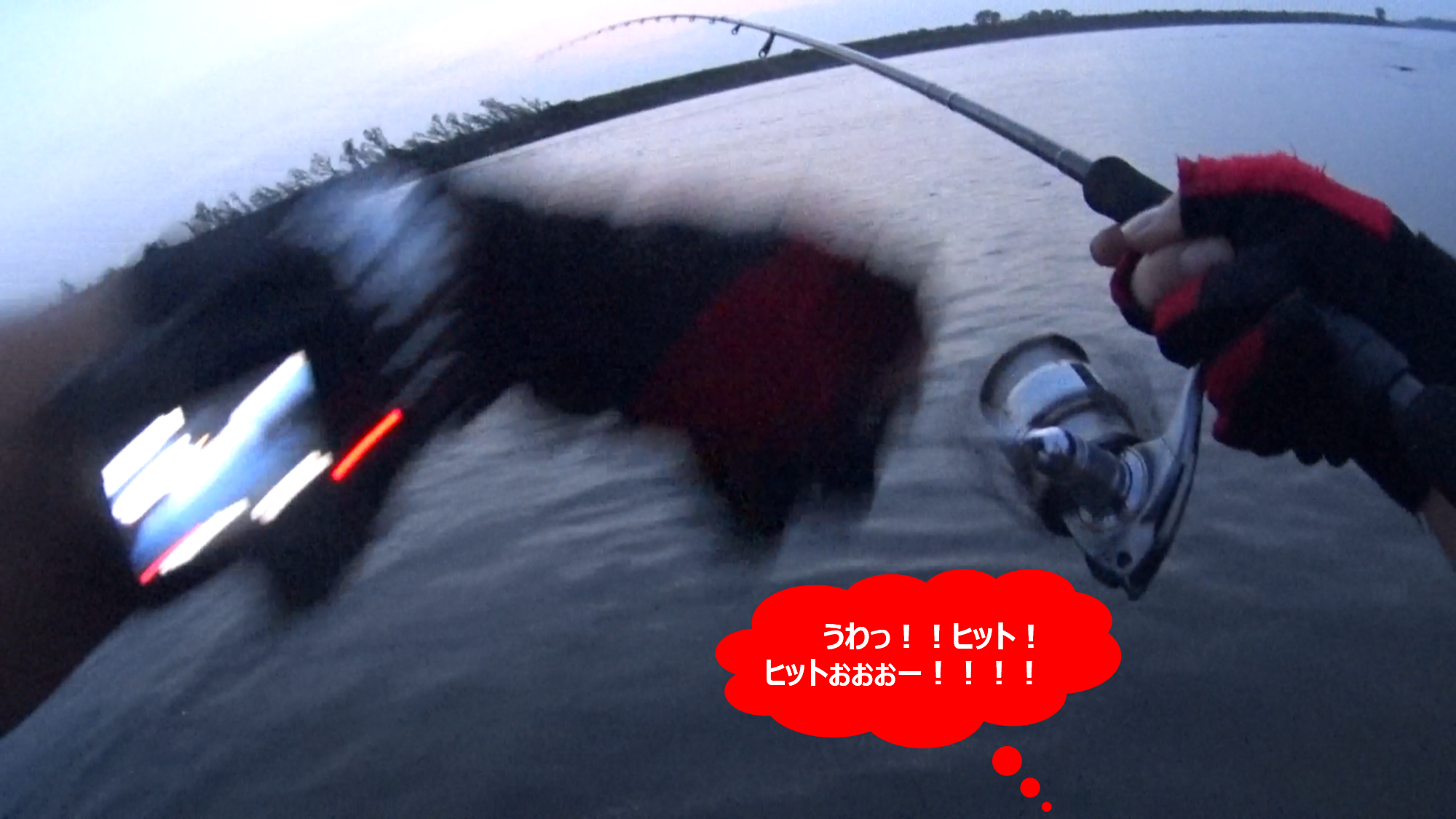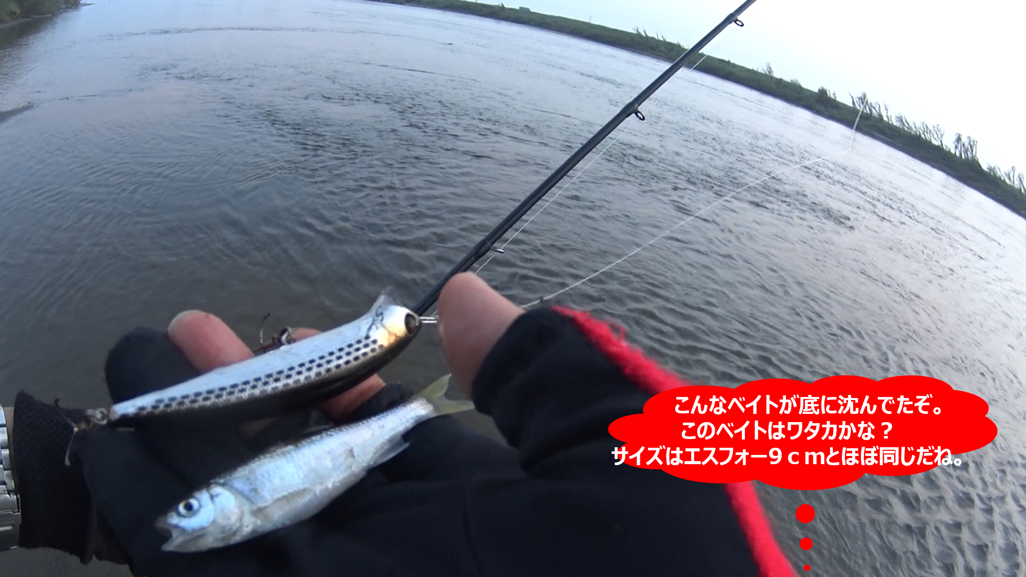 ちなみに、下の画像は当日の実釣動画からのキャプチャー画像なのだが、この水面のザワツキが利根川での爆釣ポイント開拓の重要ポイントの1つになるのだ。
