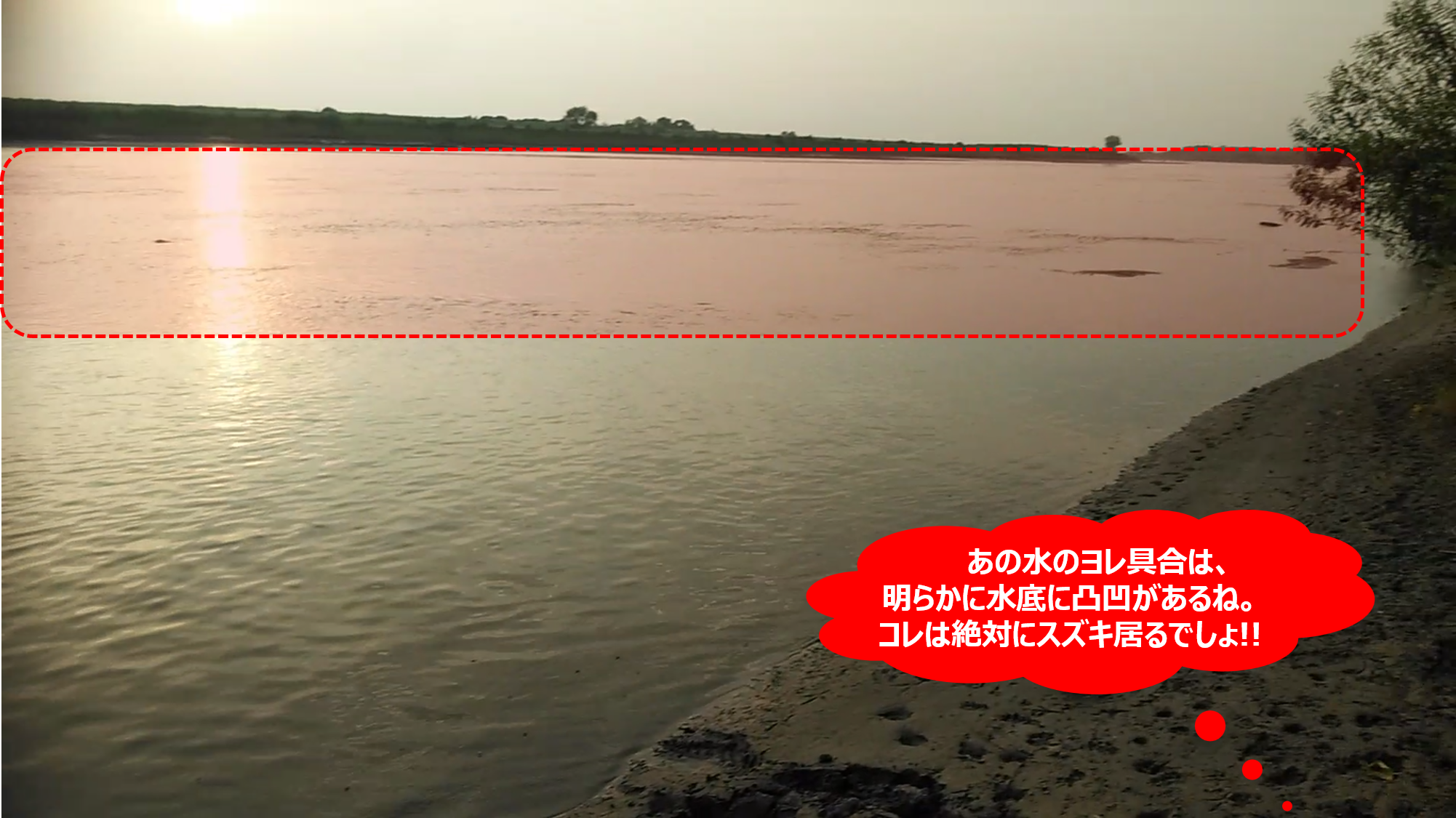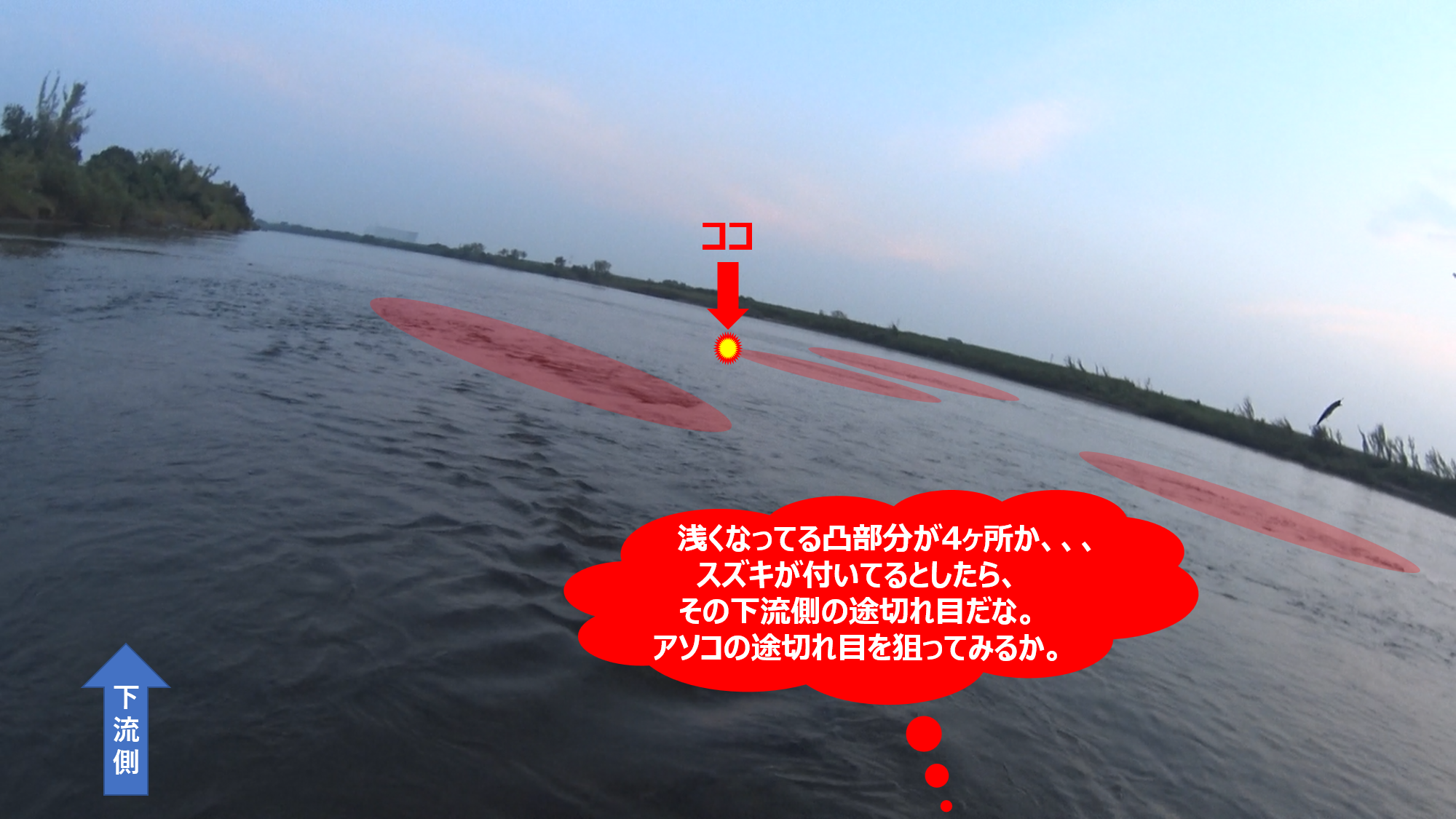上記の記事のポイントに行ったことがある方なら、下の画像に映っている水面のザワツキが何を意味しているのかは、すぐに分かると思う。