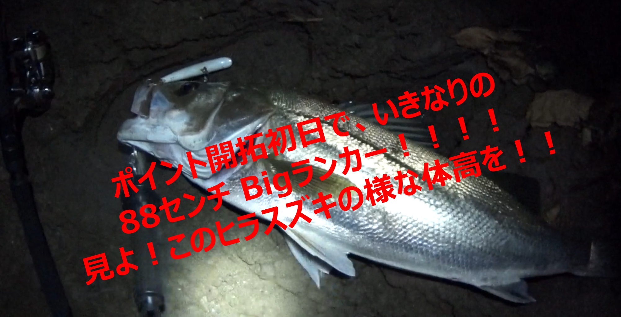 ツアー43:ポイント開拓初日で、いきなりの88センチ Bigランカー!!!! 見よ!このヒラスズキの様な体高を!!(詳細ポイント解説&ランカーゲット動画有り with ノースリープ斎藤)