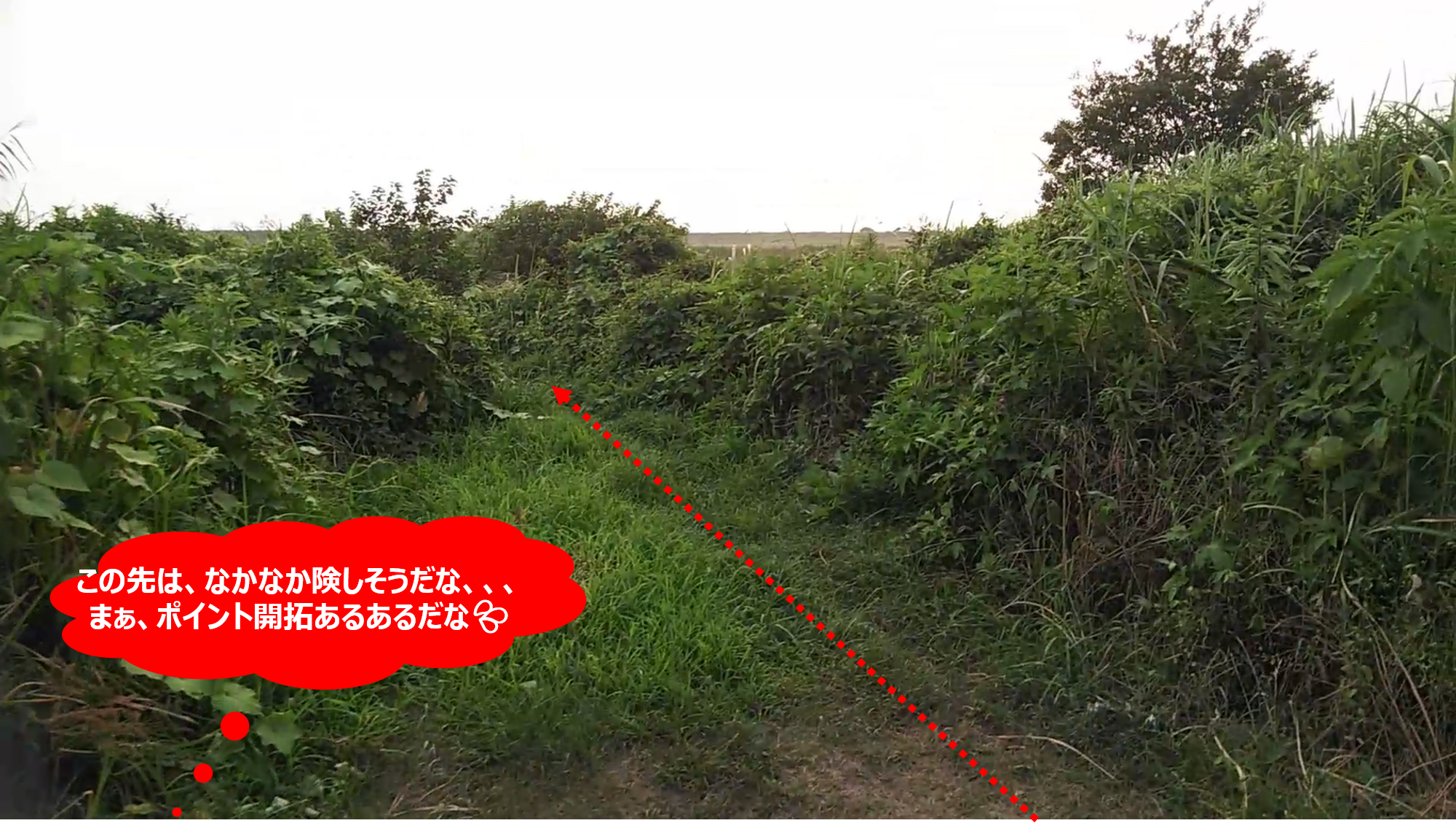 目を付けたポイントの水辺まで歩いて行けるかどうかは、実際にその場に自分の足で行ってみないと分からない事が多いのだ。下の画像は、そんなポイント開拓の苦労を記録した画像でもある。