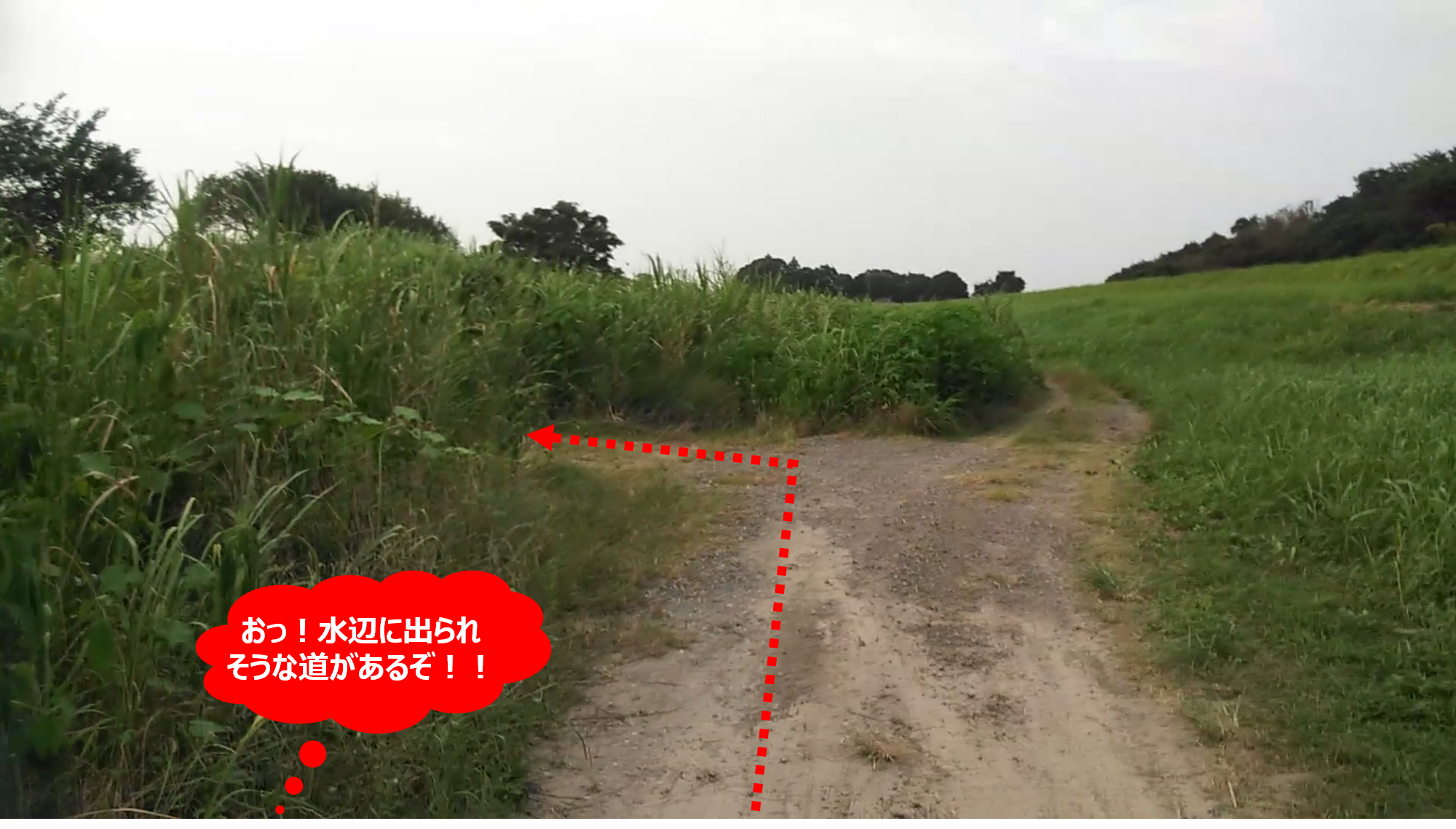 しかし「ここは爆釣しそうだ」というスポットが見つかっても、実際にその水辺まで歩いて行ける道があるかどうかまでは分からない事が多く、特に利根川の様な巨大河川の場合、道路と川の間にある葦原の距離もかなり長い場所が多いので、獣道のような細い道は衛星画像には全く写っていない事が多い。
