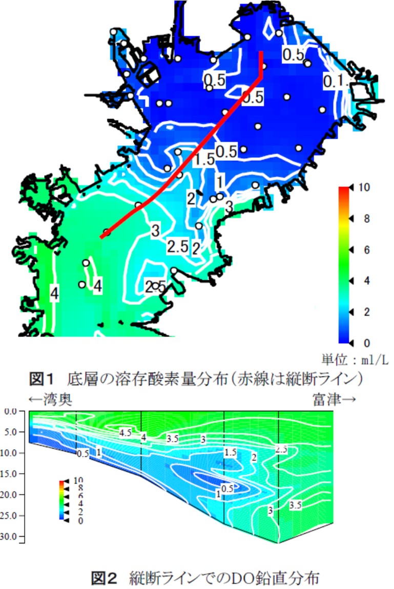 上の「貧酸素水塊速報」によると、