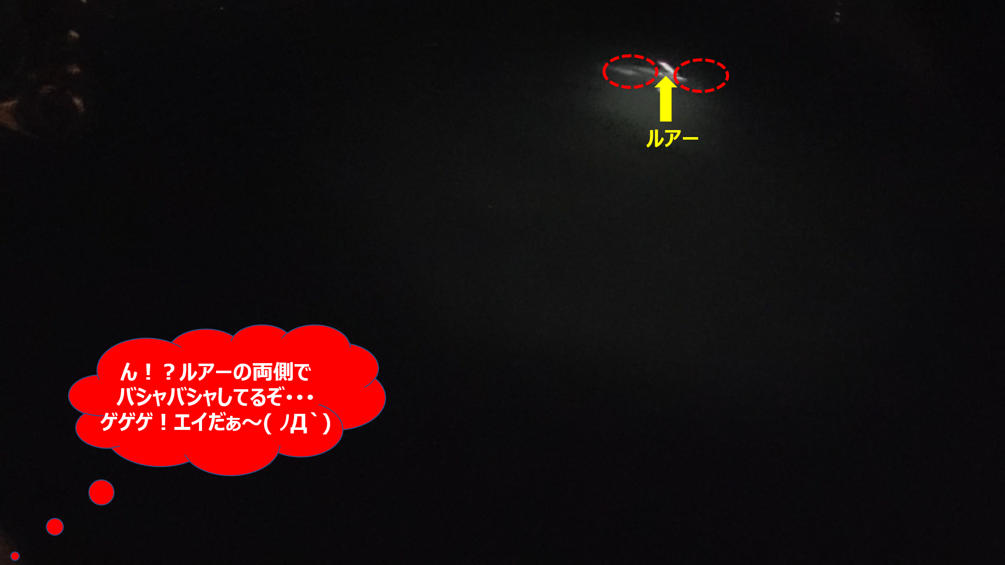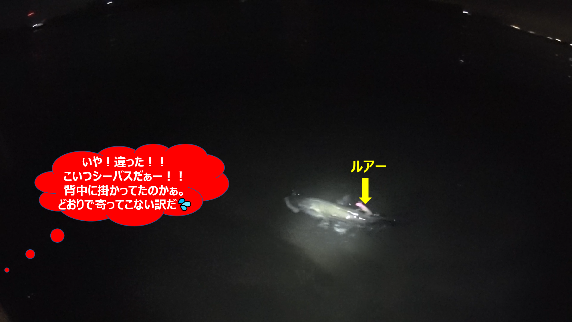 1.最初はルアーが背中なんぞに掛かっているとは思っていなかったので、視力の悪い私は、本気でエイだと思っていて、動画の中では本気で打ちひしがれている姿が映っている💦(あぁ、恥ずかしい・・・)