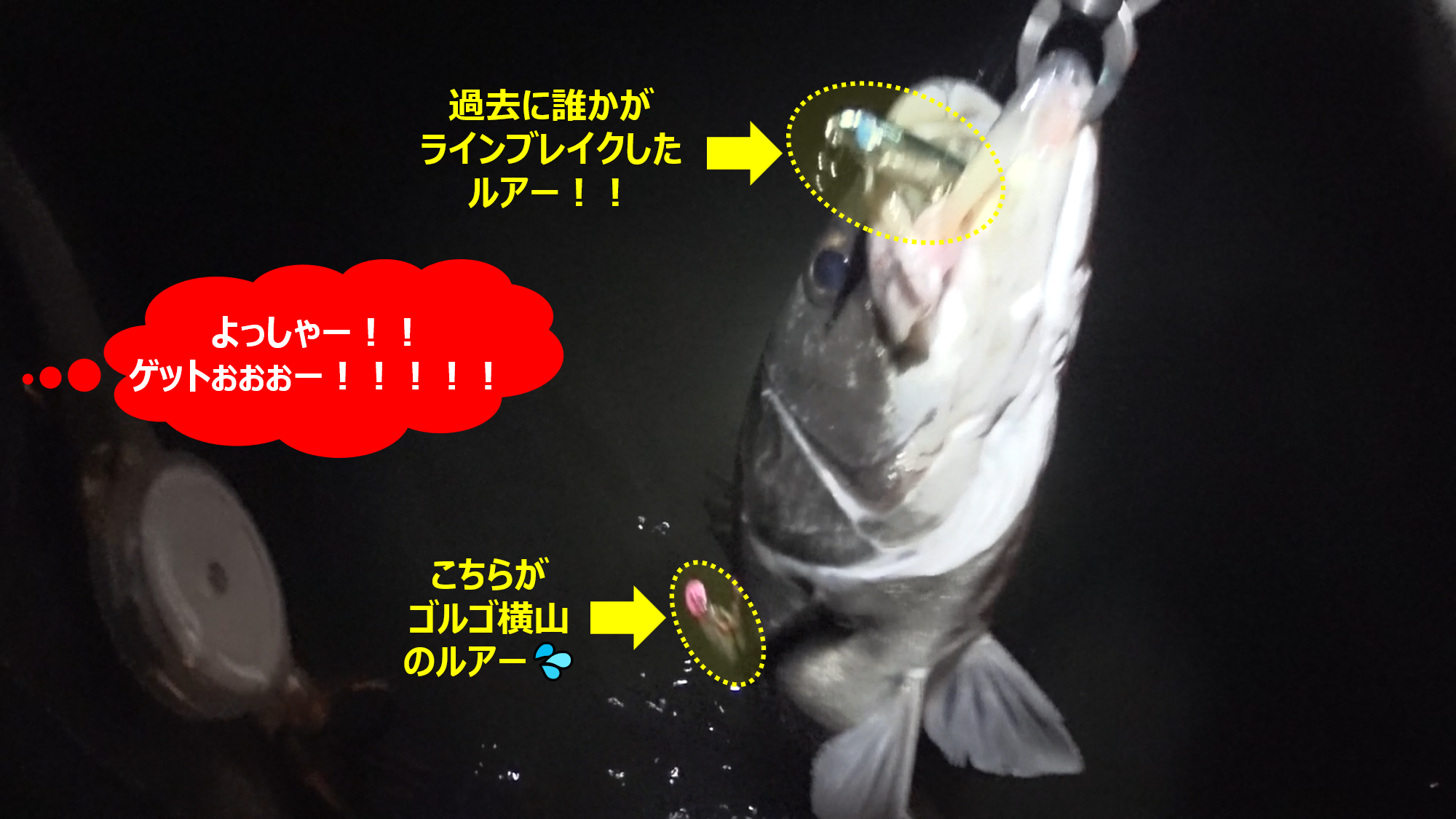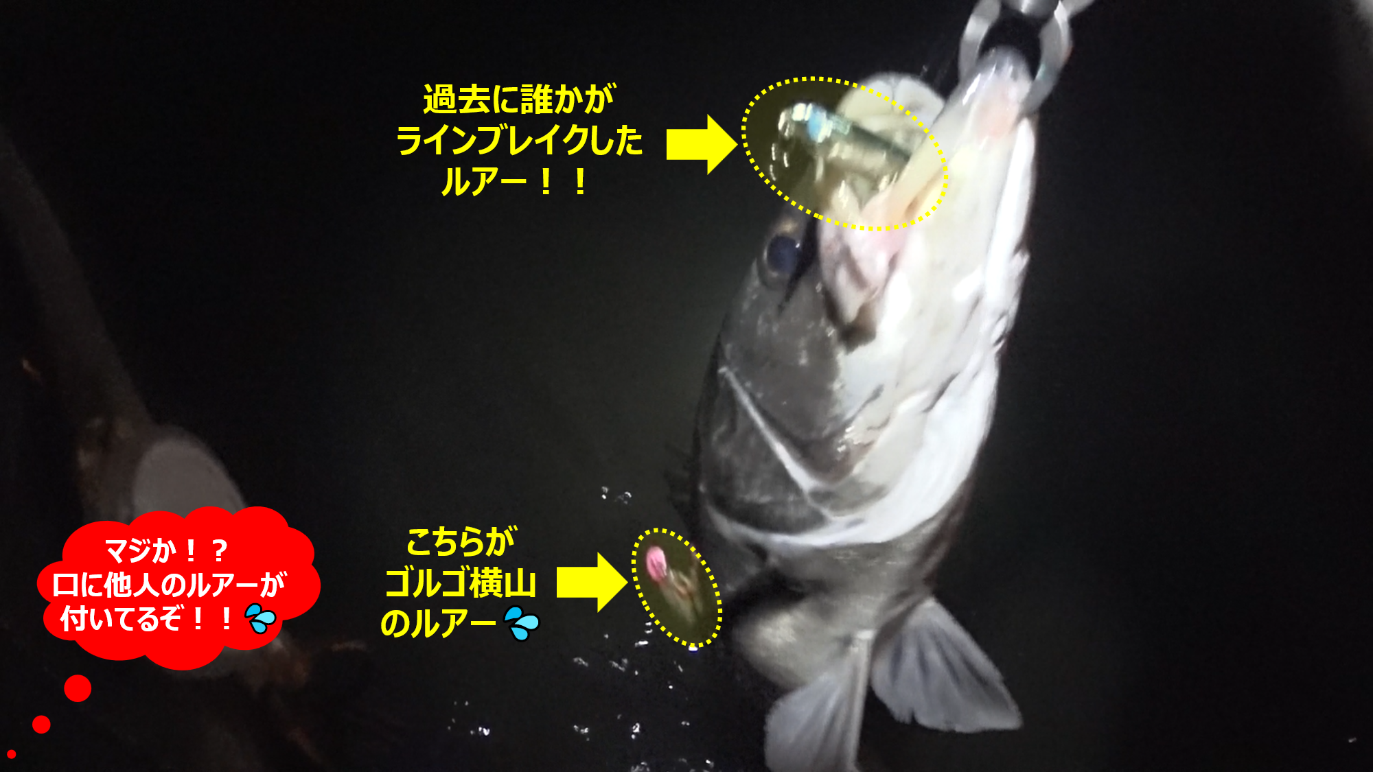 ゴルゴ驚愕!口には過去に誰かがラインブレイクしたルアーが!!