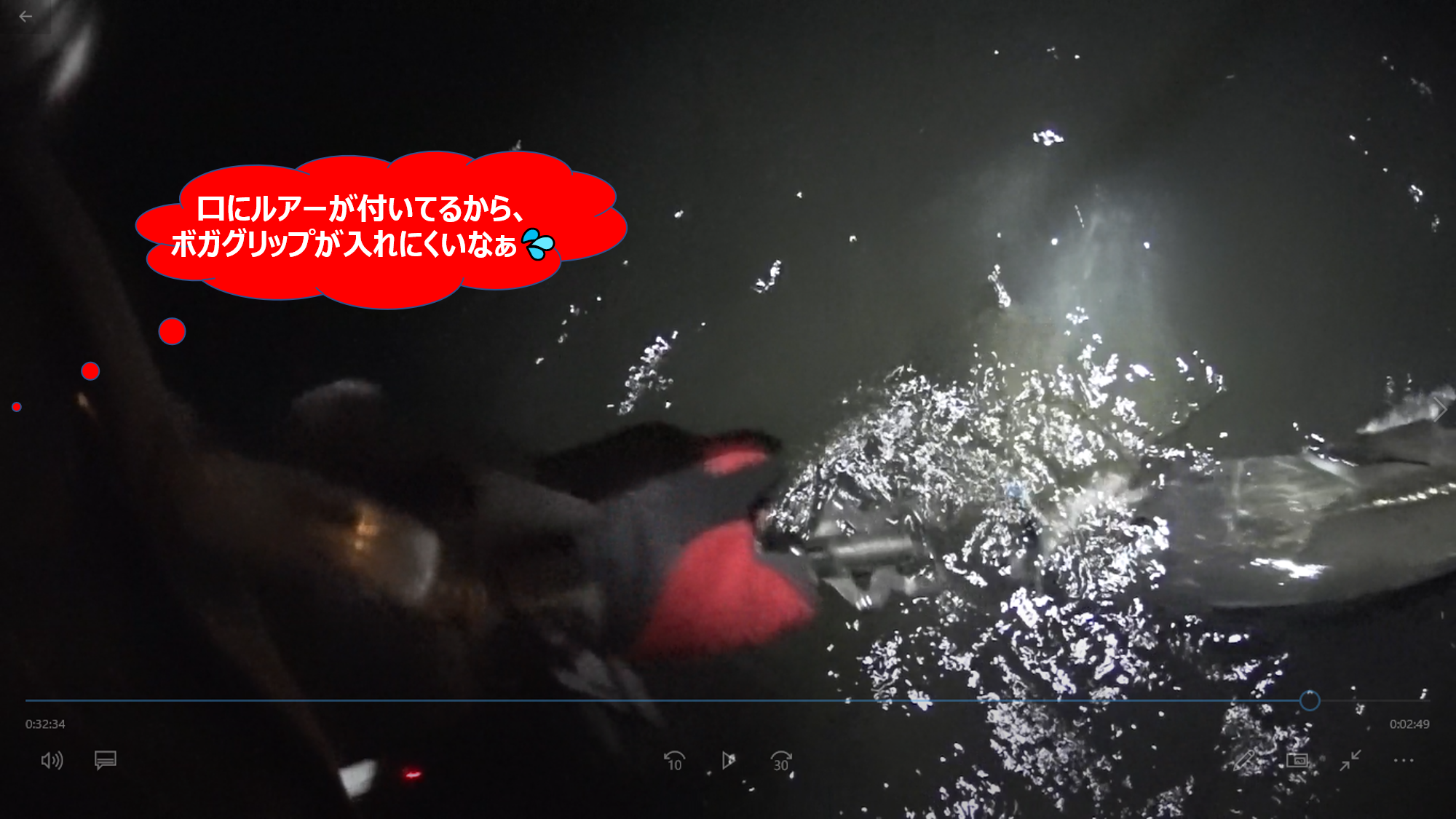 4.口に掛かっているルアーが邪魔でランディングに手間取るゴルゴ