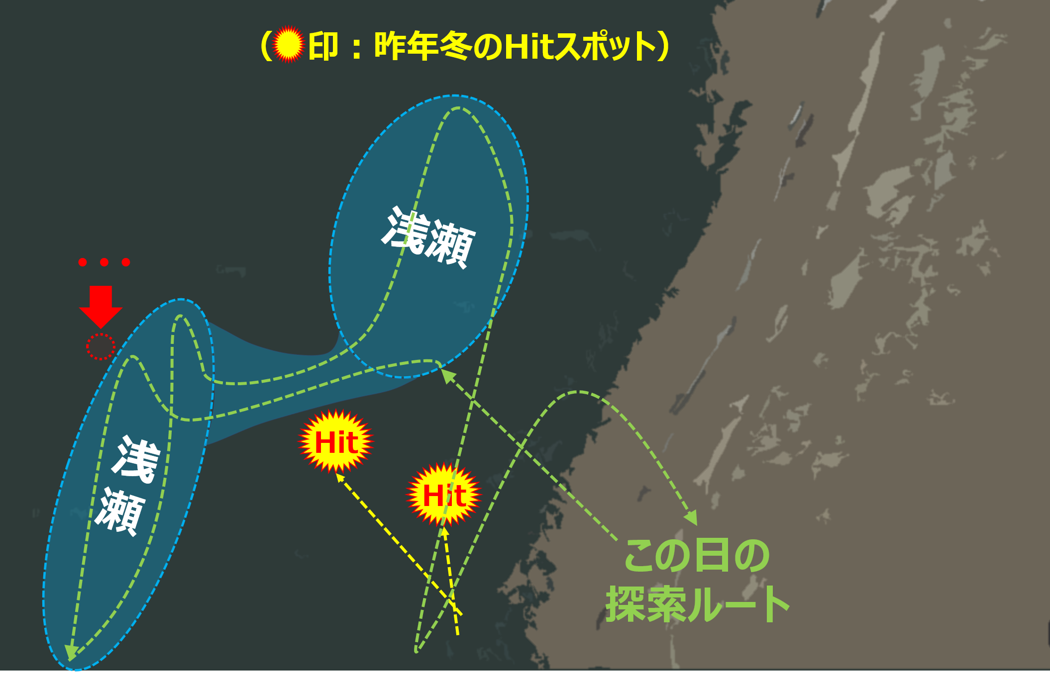 魚が釣れていないので、釣りの記事としては面白くもなんともない記事になってしまったのが残念でならないが、個人的には、今回は「大発見」レベルの発見であり、ポイントヲタクの私としては、ランカー10本に匹敵する喜びでもあった。