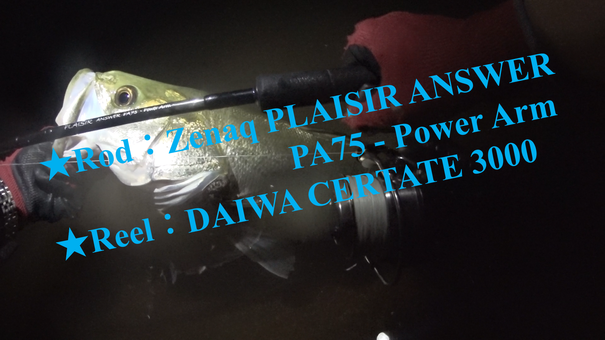 ヒットの瞬間、アワセを入れているのだが、全くピクリともしないため、最初は「木にでも引っ掛かったようです・・・」と呟いているのだが、その直後、物凄い水柱が暗闇を引き裂き、一気にドラグが回転し、ラインが勢いよく引き出されて行っていることが分かるだろう。