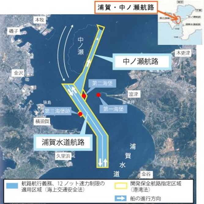 ちなみに東京湾は、湾全体が元々大きな川の河口だった事もあり、観音崎と金谷を結んだ線以北(内湾部)の東京湾の水深は約50mより浅く、平均水深は約15mの比較的平坦な水底地形なのだが、観音崎と金谷を結んだ線より以南では、突然水深が100m以上となる急深い海底の谷が存在し、その谷の筋が「浦賀水道」と呼ばれていて、多くの深海魚の宝庫としても知られている。