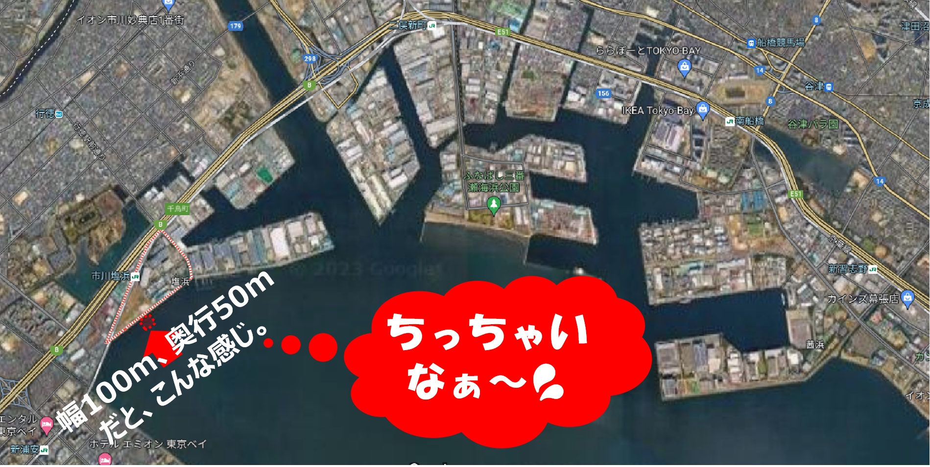 ちなみに、この辺りは「塩浜三番瀬公園」という、造成工事中の公園になっていて、現在も広い範囲が立ち入り禁止になっていないので、実際に見に行ったり、釣りをする事ができ、既にシーバスの釣果実績も出ている。