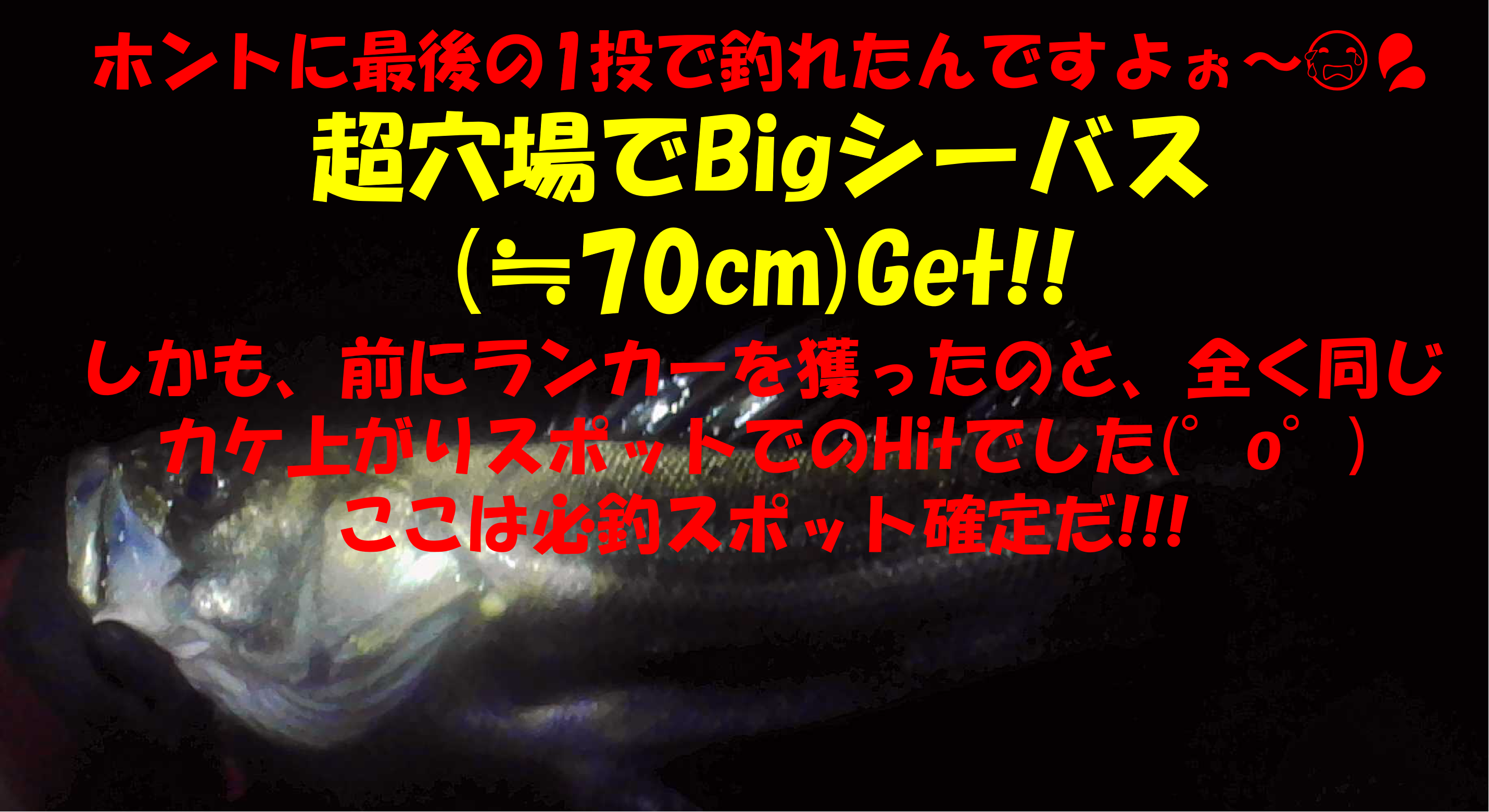 今回のBigシーバスゲットは、かなりエキサイティングで、いい動画が獲れたつもりで、喜び勇んで帰ったのだが、後で動画を確認して倒れそうになった・・・😭