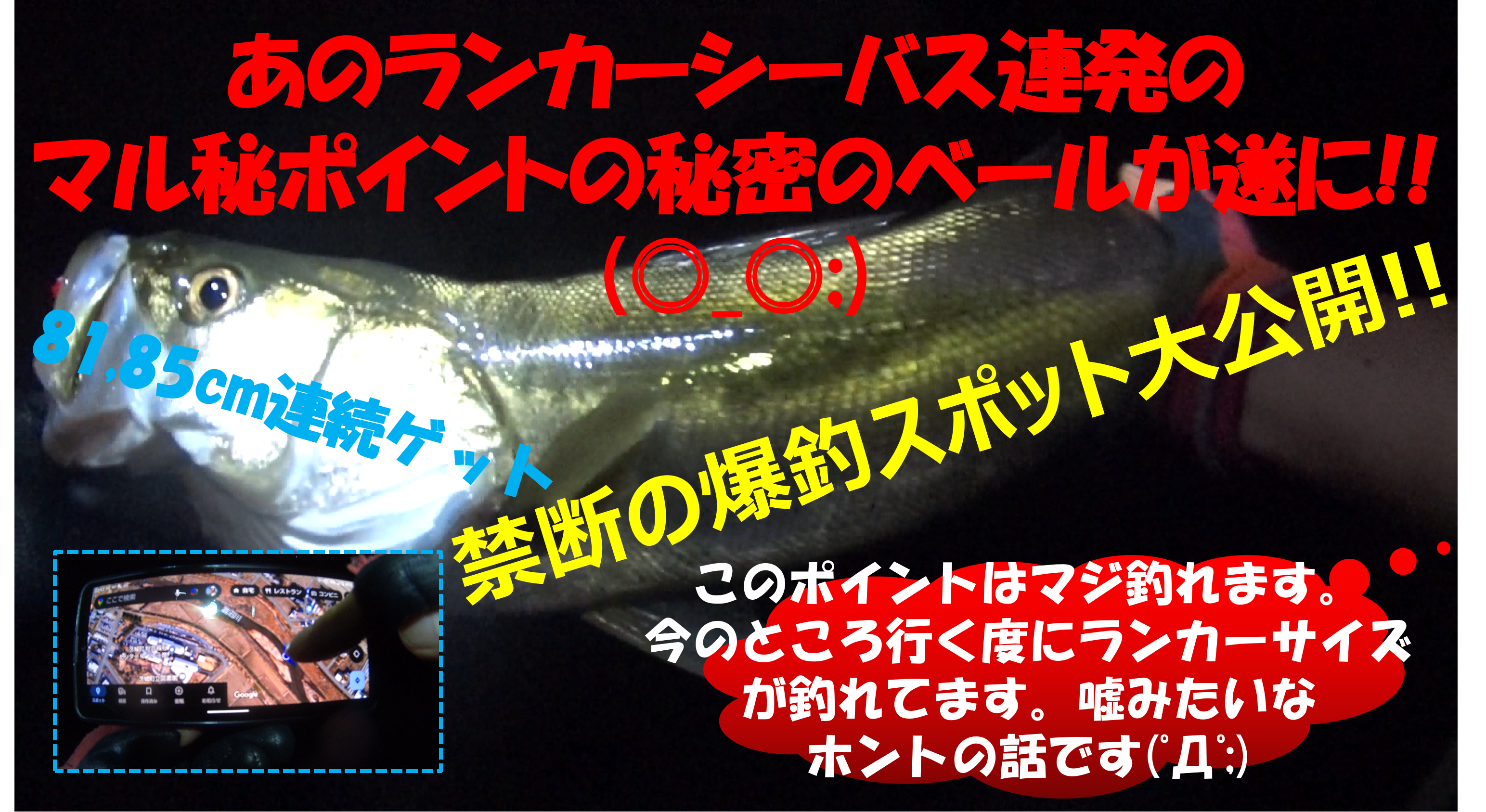 先日掲載した記事★「ゴルゴ横山からの挑戦状!-その4:「茨城県某河川」 ~このポイントどこだかお分かりか?~」の回答については「★【前編】ゴルゴ横山 ランカーシーバス連発!!85,81,66cmシーバス+ナマズ;禁断のマル秘爆釣スポット大公開!!~ポイントの詳細解説& 釣れる理由大公開~」で、これでもかと言うくらい詳しく解説したのだが、あまりに詳しく解説記事を作成したため、途中で力尽きて、フル動画を掲載するに至らなかった。