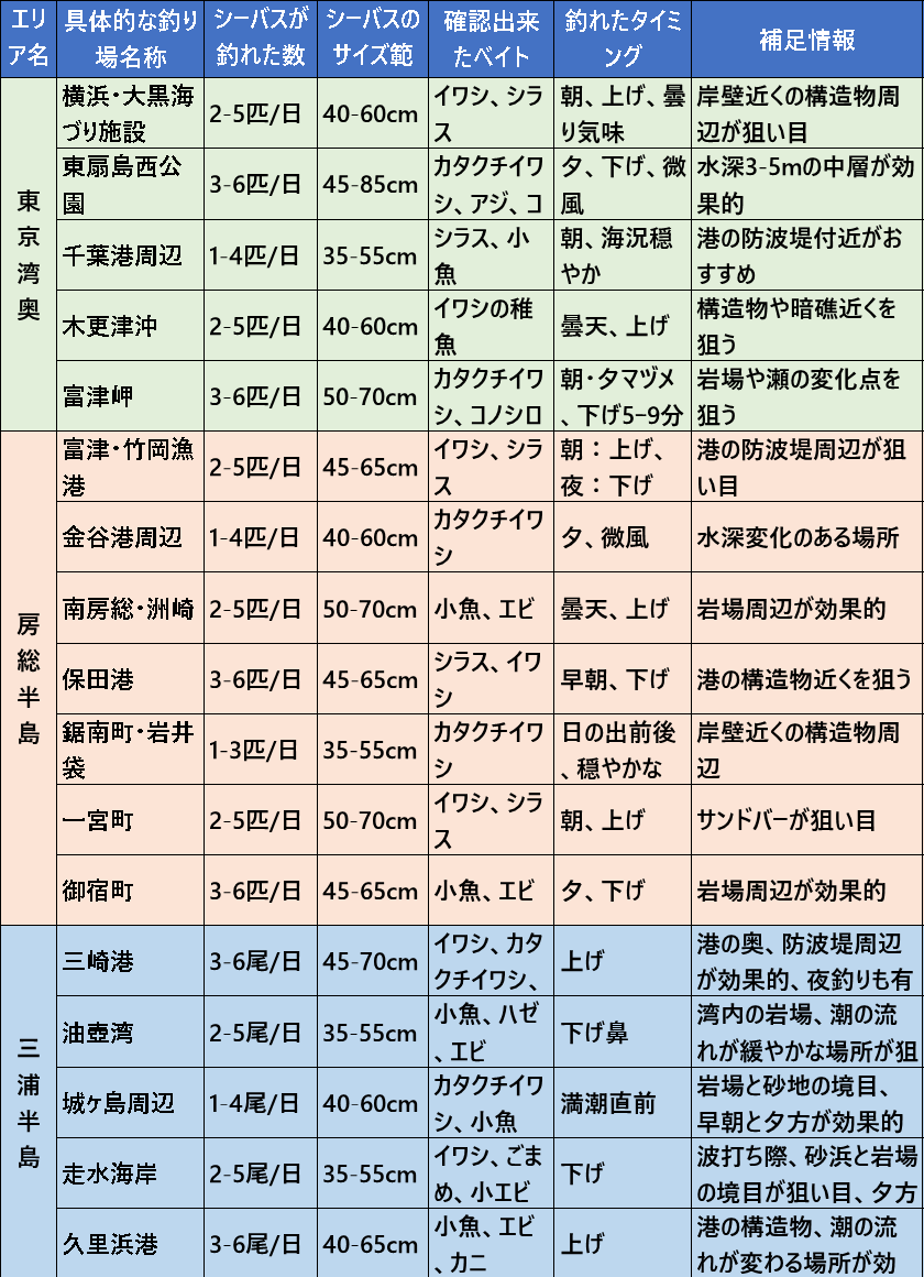 ということで、直近(過去3日間:11/26~11/28)のシーバス釣果情報です。
