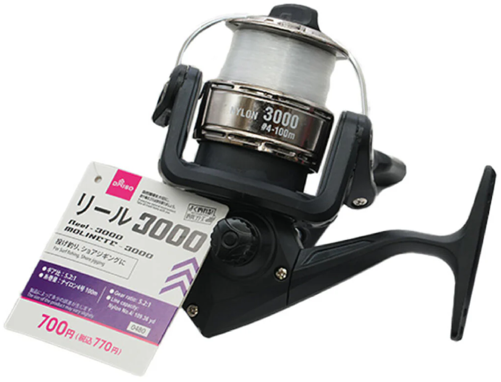 ・・・ということで、今回は清水の舞台から飛び降りる気持ちで、どうせ試すなら一番安いリールでやってみようと思い「ダイソー(DAISO)」の700円リールを試してみる事にした(笑)
