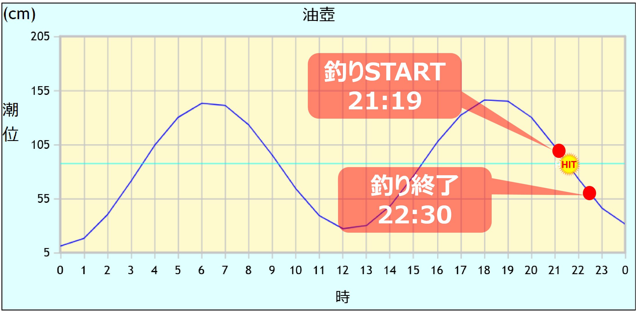 その後、2ヶ所目に移動し、ウェーディングを始めると1投目からいきなりヒットし、68cmのナイスサイズのゲットに成功したのだった。下のタイドグラフは、2ヶ所目に移動した時のタイドグラフだ。