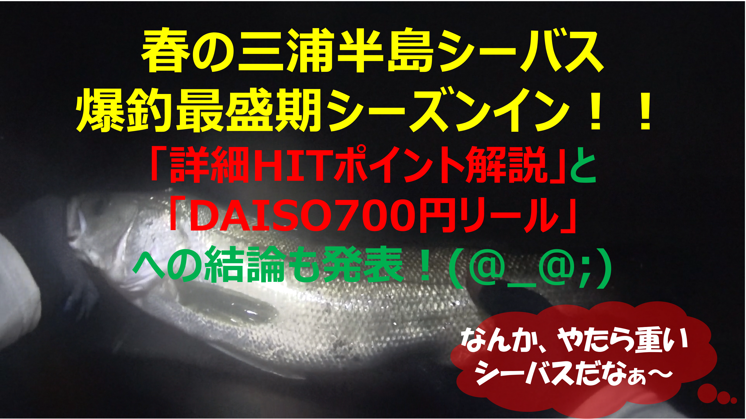 ツアー88:春の三浦半島シーバス 爆釣最盛期シーズンイン!良型シーバスGET!!スランプに陥るのは何故?「直近効果」からの脱出 ~「詳細HITポイント解説」と「DAISO700円リール 」への結論も発表!(@_@;)~