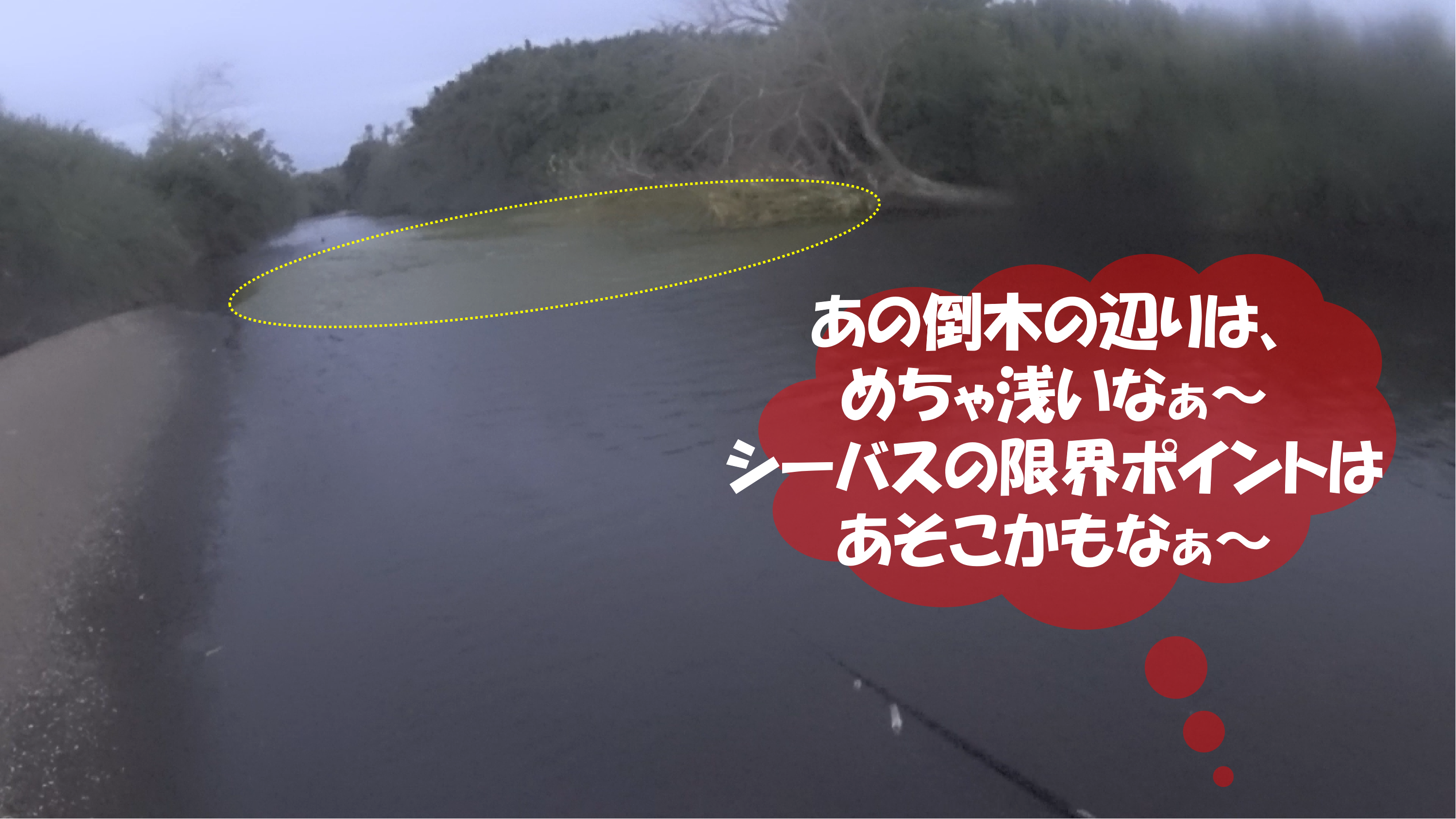 このポイントの正解は後日、下のボタンのリンク先で詳細解説する予定なのだが、地図上で「ここです」と指さしても、多くの方は「そんなとこにシーバスは入って来ないだろう」と思うようなポイントだ。